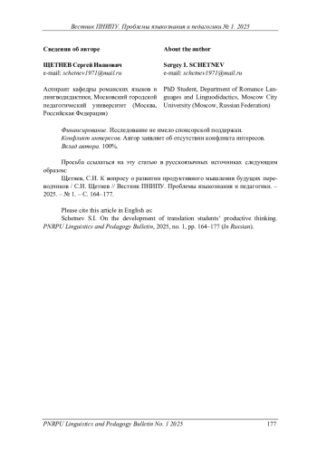 В качестве основных действий продуктивного мышления выделяются комбинирование, трансформация и конструирование, благодаря которым происходит качественное изменение известных переводчику приёмов и способов перевода и нахождение оптимального переводческого решения. Кроме того, автор статьи дает общую характеристику продуктивного мышления переводчика и описывают его роль в процессе перевода как сложной интеллектуальномыслительной деятельности. Продуктивное мышление переводчика рассматривается в соотношении с репродуктивным, логическим и творческим мышлением; упоминаются основные механизмы, обеспечивающие эвристический подход к переводческой деятельности.