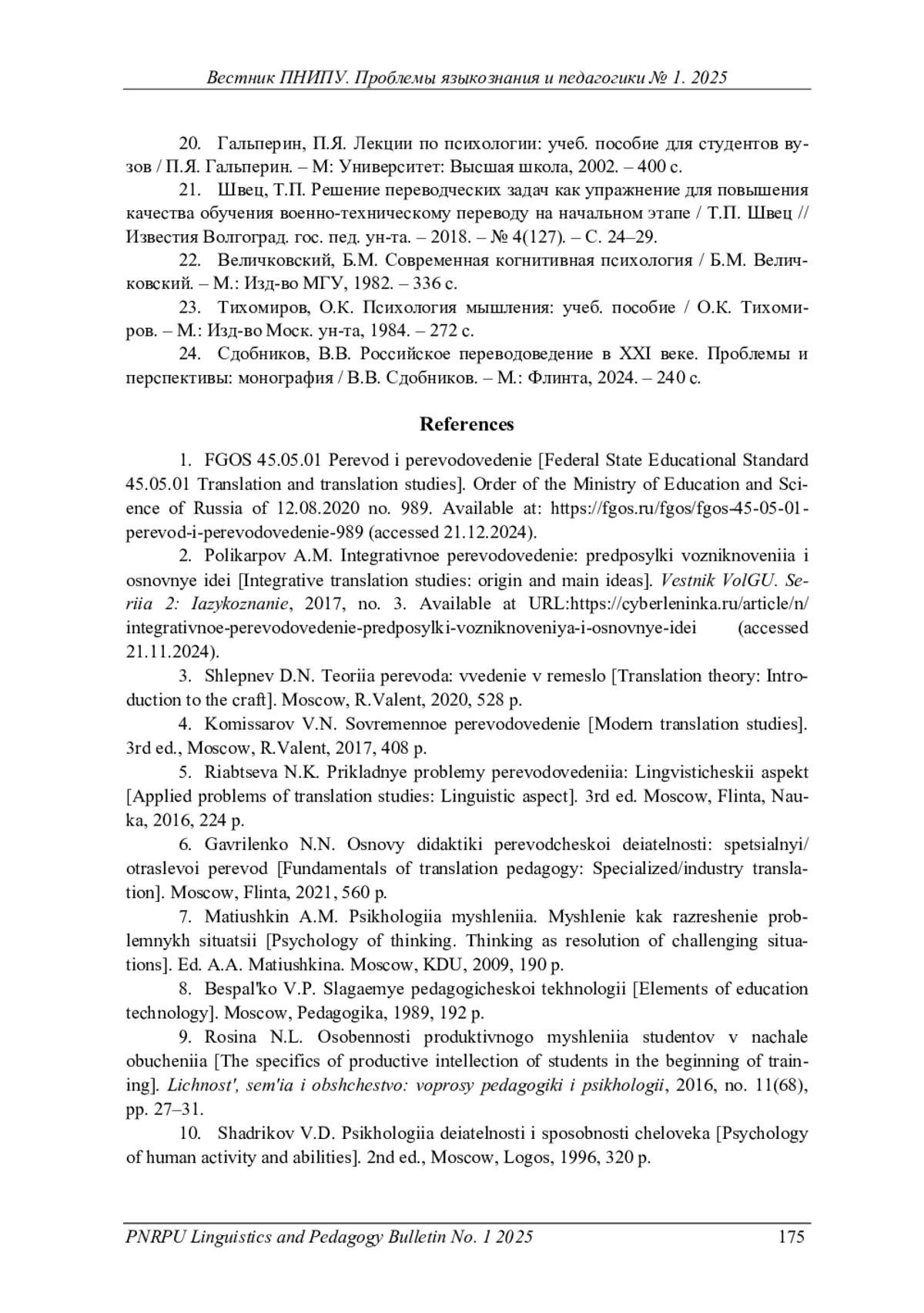 16. 	Наугольных, А.Ю. Профессиональное мышление переводчика как категория дидактики перевода / А.Ю. Наугольных // Вестник Пермского национального исследовательского политехнического университета. Проблемы языкознания и педагогики. - Пермь: Изд-во Перм. нац. исслед. политехн. ун-та, 2010. - С. 73-79.