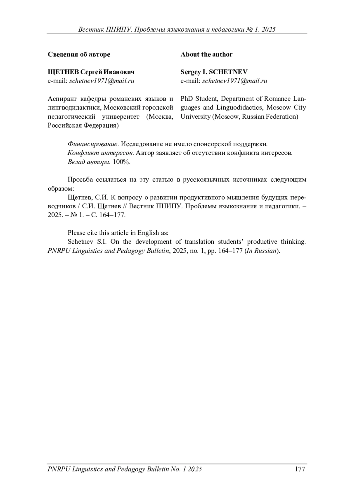 21. 	Швец, Т.П. Решение переводческих задач как упражнение для повышения качества обучения военно-техническому переводу на начальном этапе / Т.П. Швец // Известия Волгоград. гос. пед. ун-та. - 2018. - № 4(127). - С. 24-29.