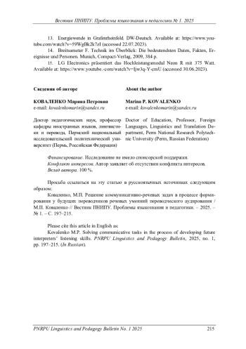 3. 	Коваленко, М.П. Обучение профессиональному аудированию будущих устных переводчиков в технической сфере: монография / М.П. Коваленко, Т.С. Серова. - Пермь: Изд-во Перм. нац. исслед. политехн. ун-та, 2024. - 350 с.