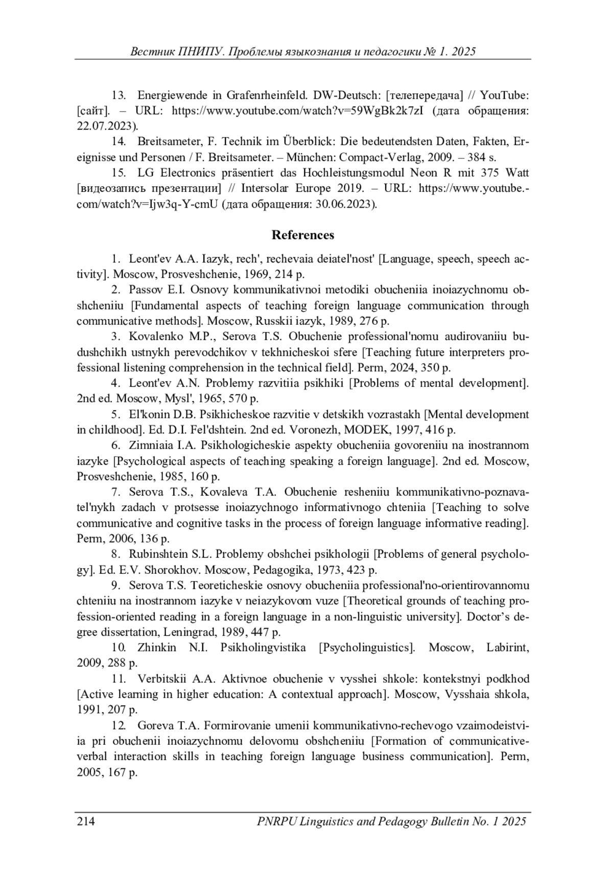 1. 	Леонтьев, А.А. Язык, речь, речевая деятельность / А.А. Леонтьев. - М.: Просвещение, 1969. - 214 с.  EDN: NKXEGF