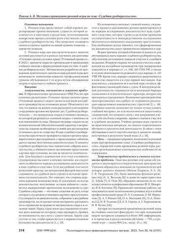 14. Серова Е. Б., Харатишвили А. Г., Кулик Н. В. Деловая игра как средство профессиональной подготовки будущих следователей // Правда и закон. 2023. № 3(25). С. 55–63.