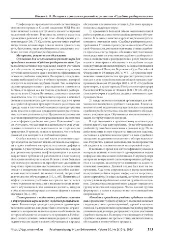 13. Уханова Н. В. Методика проведения ролевых игр на практических занятиях по учебной дисциплине «Предварительное следствие в органах внутренних дел» // Вестник экономической безопасности. 2018. № 3. С. 270–274.