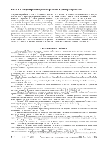 11. Мальцева О. А. Ролевая игра как метод проведения занятий в вузах МВД России // Научный вестник Орловского юридического института МВД России имени В. В. Лукьянова. 2017. № 2(71). С. 132–135.
