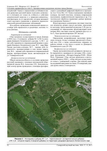 21. 	Корниенко В.О., Калаев В.Н. Эколого-морфологические и биомеханические особенности Gleditsia triacanthos L. в условиях антропогенного загрязнения города Донецка // Вестник Воронежского государственного университета. Серия: Химия. Биология. Фармация. 2018. № 2. С. 143-151. EDN: XUWIMP