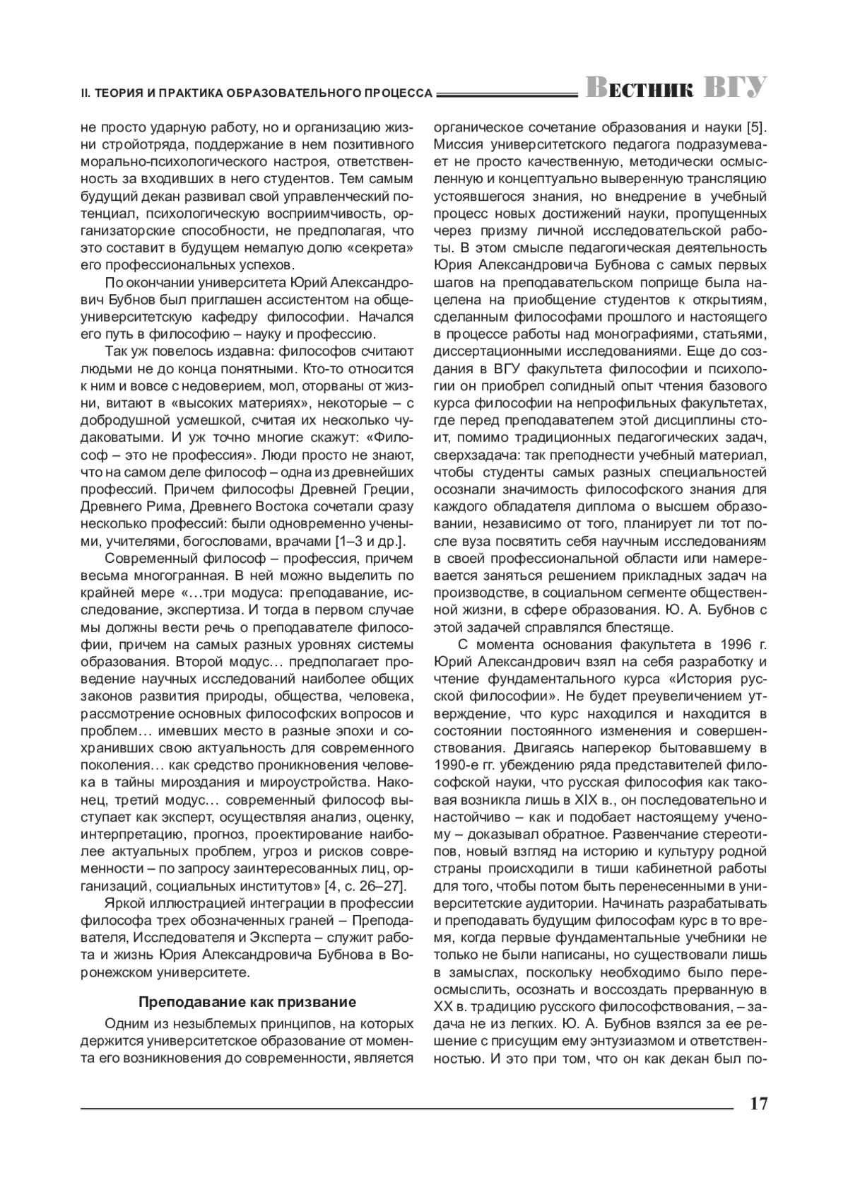 17. Бубнов Ю. А. К вопросу о философском образовании в России XVII-XVIII вв. / Ю. А. Бубнов // Вестник Воронежского государственного технического университета. - 2010. - Т. 6, № 4. - С. 102-104. EDN: KIGTKH