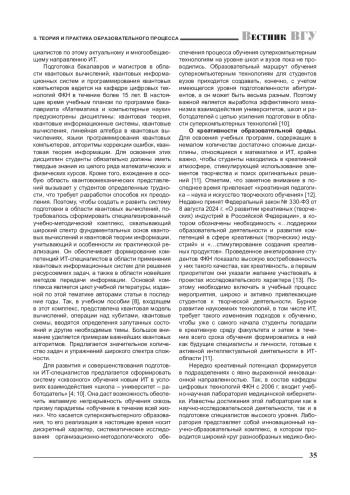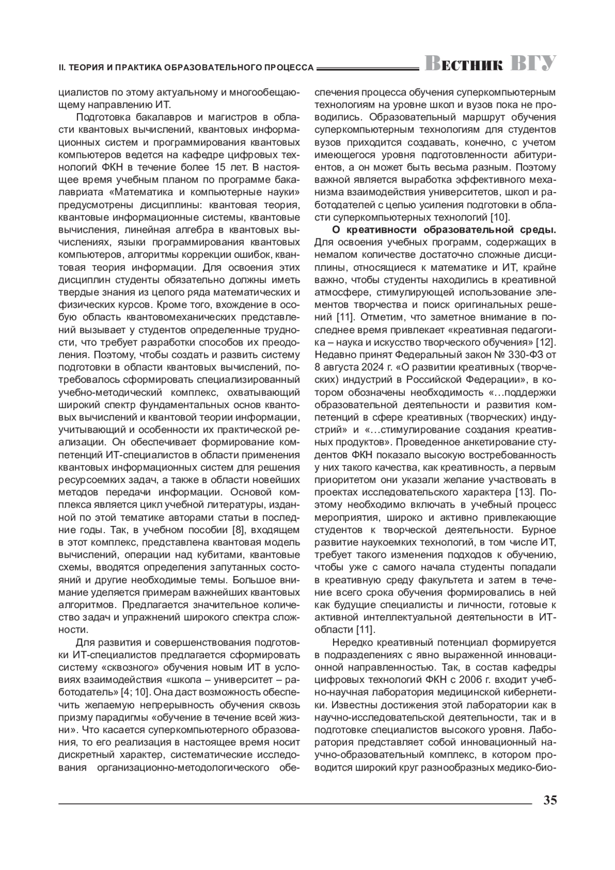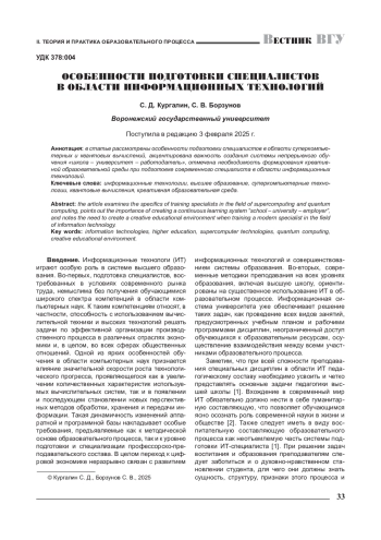 В статье рассмотрены особенности подготовки специалистов в области суперкомпьютерных и квантовых вычислений, акцентирована важность создания системы непрерывного обучения «школа - университет - работодатель», отмечена необходимость формирования креативной образовательной среды при подготовке современного специалиста в области информационных технологий.