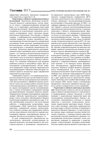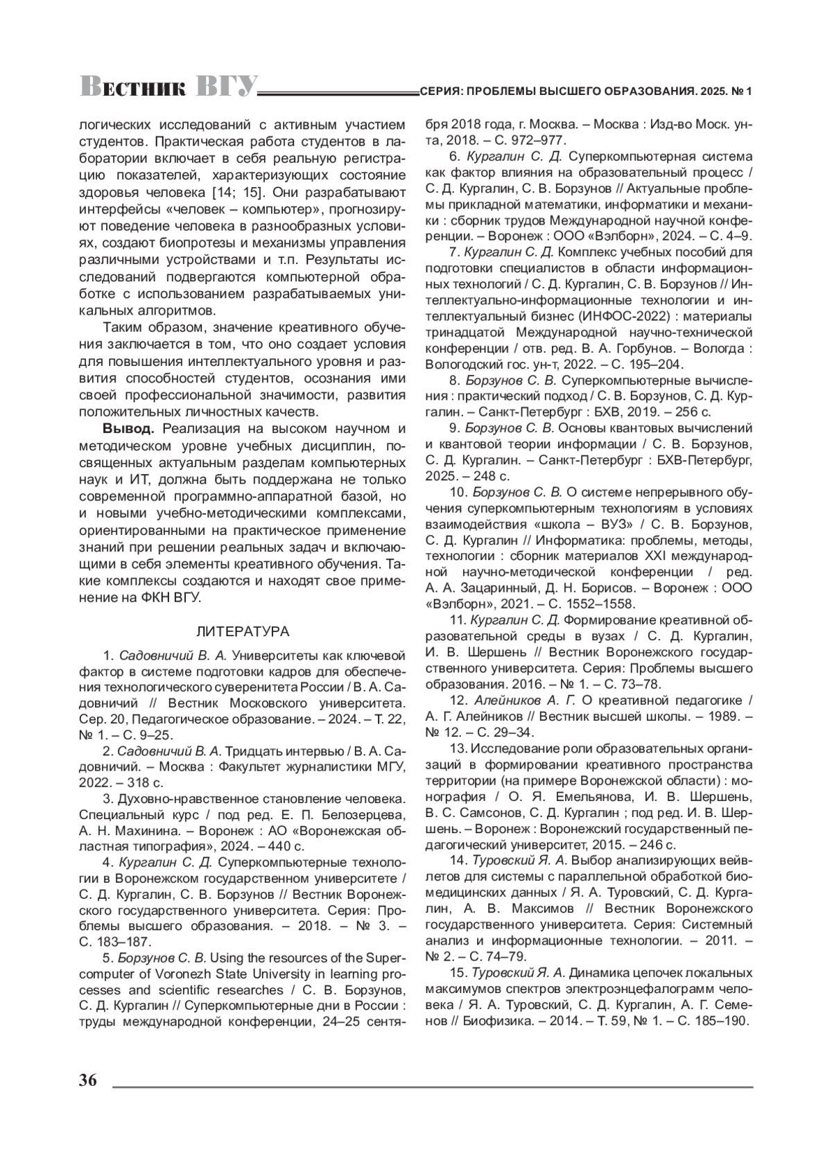4. Кургалин С. Д. Суперкомпьютерные технологии в Воронежском государственном университете / С. Д. Кургалин, С. В. Борзунов // Вестник Воронежского государственного университета. Серия: Проблемы высшего образования. - 2018. - № 3. -С. 183-187. EDN: XZHVVB