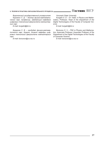 7. Кургалин С. Д. Комплекс учебных пособий для подготовки специалистов в области информационных технологий / С. Д. Кургалин, С. В. Борзунов // Интеллектуально-информационные технологии и интеллектуальный бизнес (ИНФОС-2022): материалы тринадцатой Международной научно-технической конференции / отв. ред. В. А. Горбунов. - Вологда: Вологодский гос. ун-т, 2022. - С. 195-204. EDN: FXRWVC