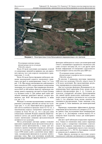В статье рассматриваются возможности применения методов регистрации световых и индукционных кривых флуоресценции хлорофилла тест-культуры Chlorella vulgaris при проведении биотестирования токсичности проб воды. Представлены результаты биотестирования проб воды из Волынцевского водохранилища и его основных притоков. Данные представлены за период активного использования ресурсов водохранилища, что привело к значительному снижению уровня воды и ухудшению качества водных ресурсов. Исследования показали наличие хронического токсического действия проб из водохранилища на исследуемый тест-объект. Фильтрат проб воды из северных притоков Волынцевского водохранилища оказывал стимулирующее действие на культуру фитопланктона. Методы флуориметрического анализа подтверждают результаты методики биотестирования, согласуются с изменением численности клеток и содержания хлорофилла в исследуемых пробах, а также позволяют выявить негативное воздействие на фотосинтетический аппарат Chlorella vulgaris, не вызывающее изменения параметров прироста тест-культуры. Выявлено негативное воздействие проб воды из основного притока водохранилища - реки Булавин - на скорость электронного транспорта и функционирование первичных акцепторов электронов фотосистемы II клеток Chlorella vulgaris. Полученные материалы могут быть полезны для исследователей, занимающихся проблемами биофизики первичных фотосинтетических реакций, экологическим мониторингом поверхностных природных вод и биотестированием.