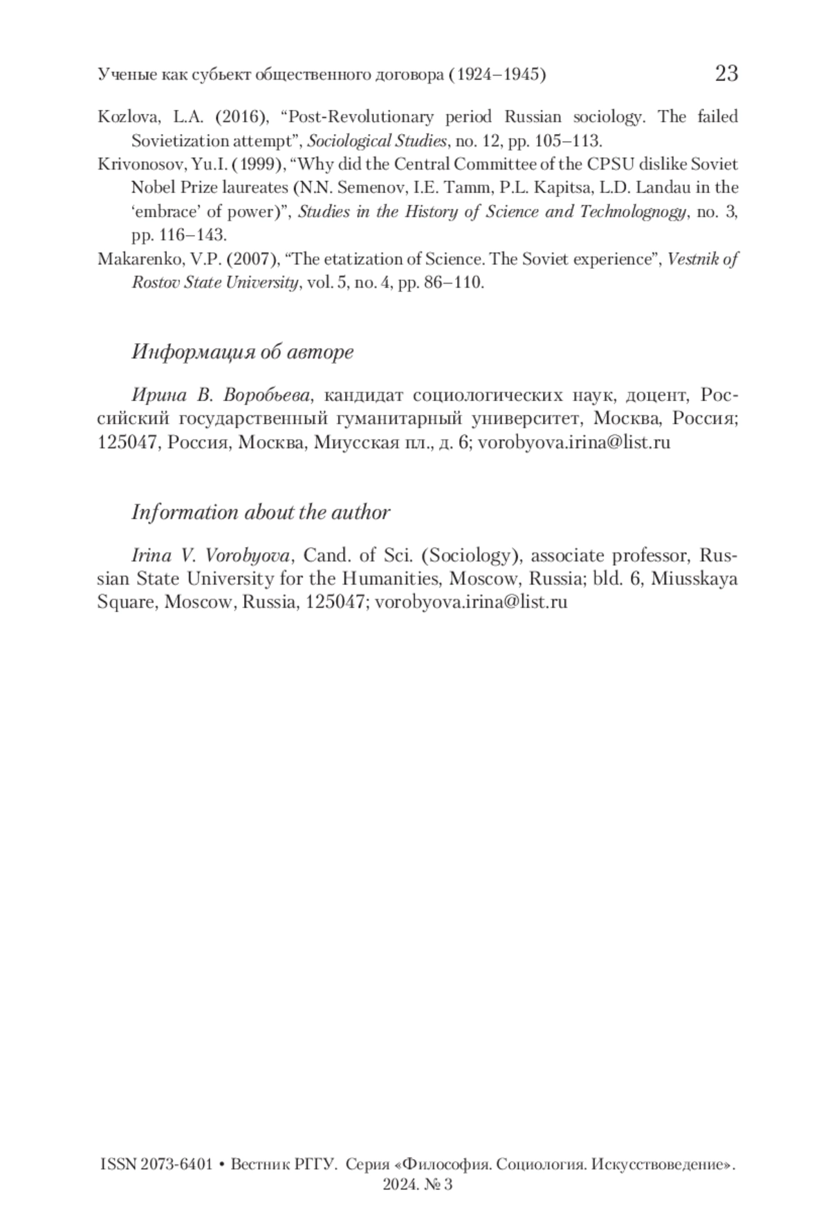 2. Козлова 2016 - Козлова Л.А. Послереволюционная российская социология: неудавшаяся попытка советизации // Социологические исследования. 2016. № 12. С. 105-113.