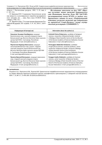 19. 	Баяндина И.И. Содержание биологически активных веществ у культивируемого зверобоя продырявленного: автореф. дис. … канд. биол. наук: 03.00.05. Новосибирск, 1995. 16 с. EDN: ZKJLNV