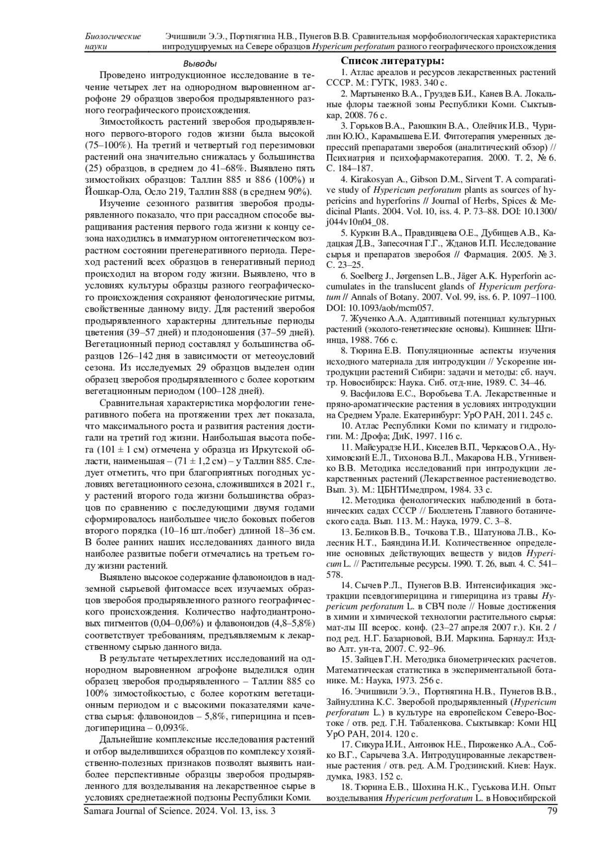 16. 	Эчишвили Э.Э., Портнягина Н.В., Пунегов В.В., Зайнуллина К.С. Зверобой продырявленный (Hypericum perforatum L.) в культуре на европейском Северо-Востоке / отв. ред. Г.Н. Табаленкова. Сыктывкар: Коми НЦ УрО РАН, 2014. 120 с.