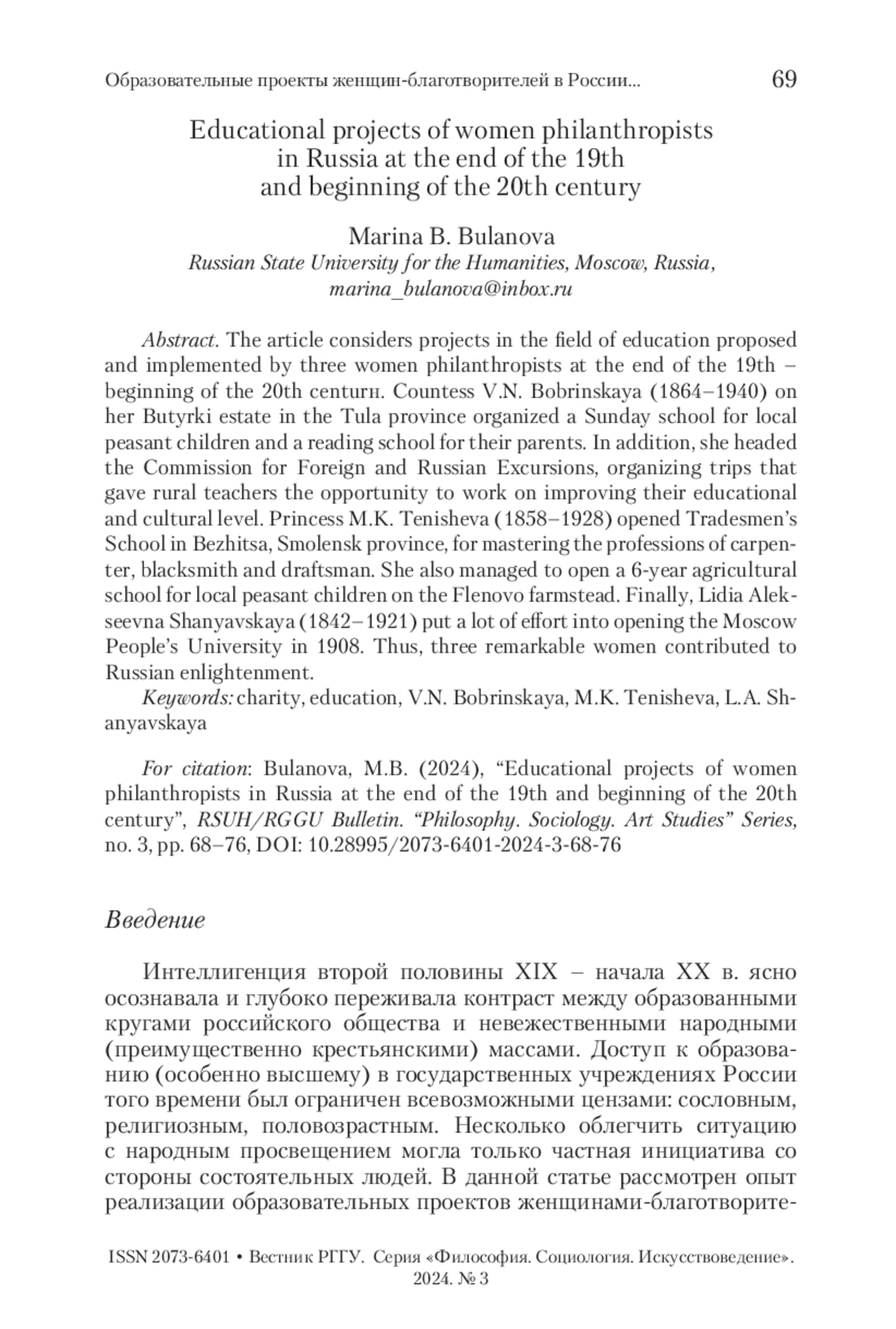 3. Михин 2024 - Михин О.В. Л.А. и А.Л. Шанявские (опыт историко-социологического анализа) // Общественный договор: формы участия интеллигенции в его реализации в России. М.: РГГУ, 2024. С. 246-252.