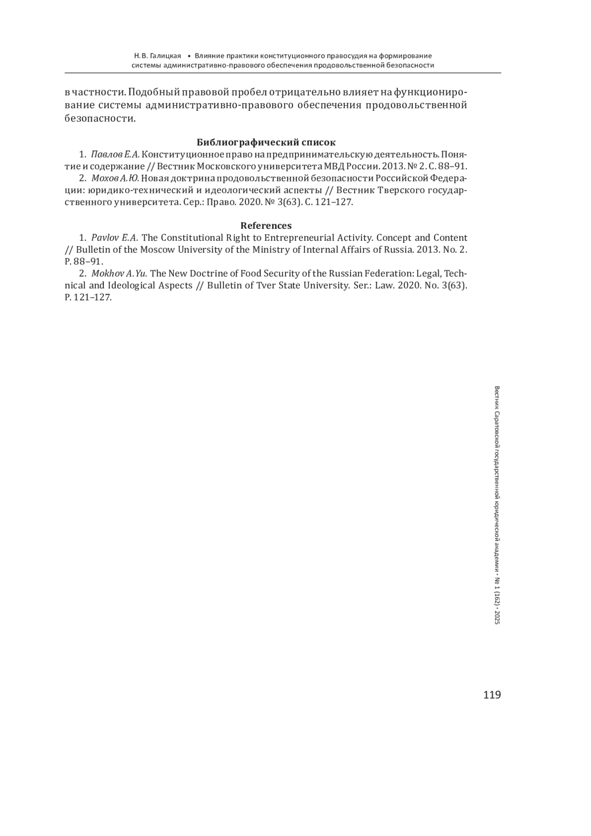 2. 	Мохов А. Ю. Новая доктрина продовольственной безопасности Российской Федерации: юридико-технический и идеологический аспекты // Вестник Тверского государственного университета. Сер.: Право. 2020. № 3(63). С. 121-127.
