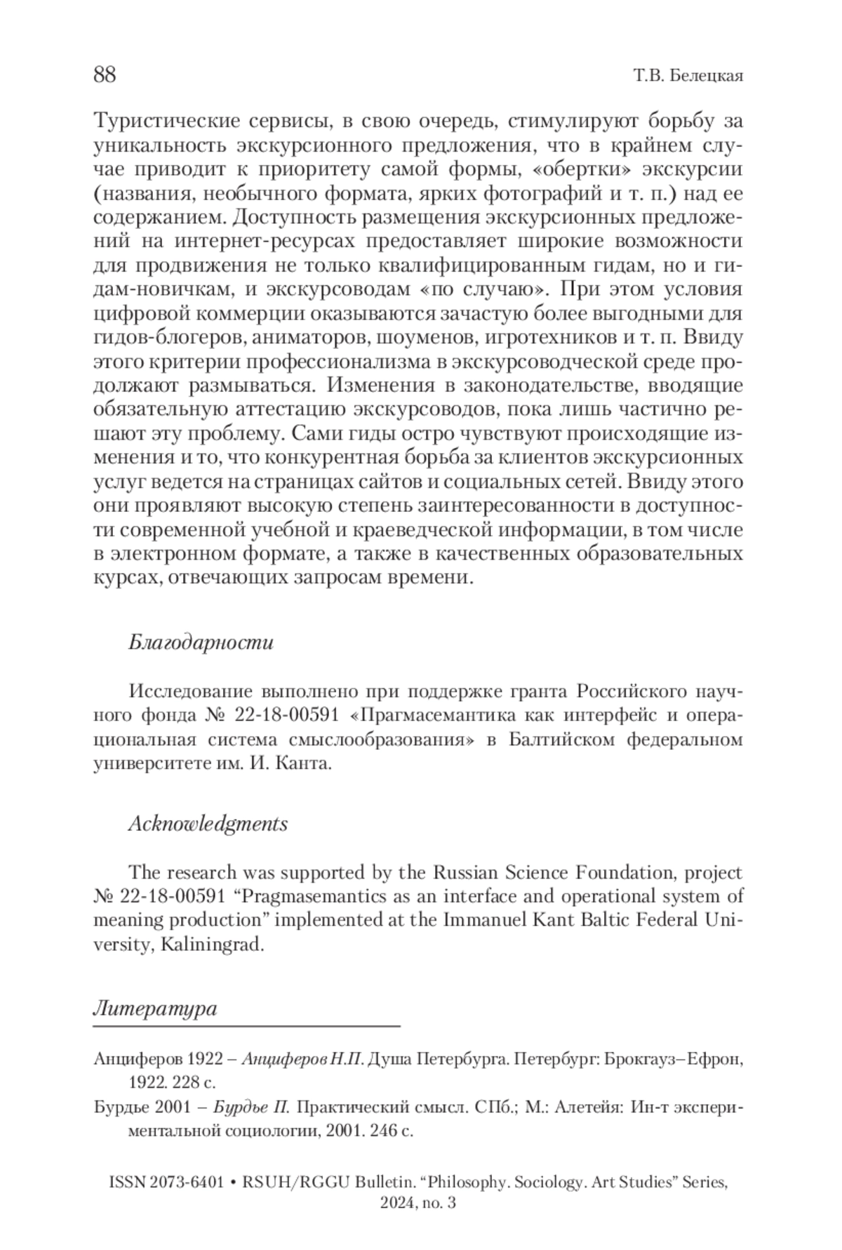 6. Кожанов 2021 - Кожанов К.А. Содержательные аспекты современной петербургской городской экскурсии // Вестник Санкт-Петербургского государственного института культуры. 2021. № 1 (46). С. 54-59. https://doi.org/10.30725/2619-0303-2021-1-54-59.