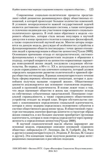 Особое внимание уделено концепту социальной справедливости в общественном мнении россиян. Понимание справедливости как основы деятельности людей оказывает влияние на их стремление жить в хорошем обществе.
