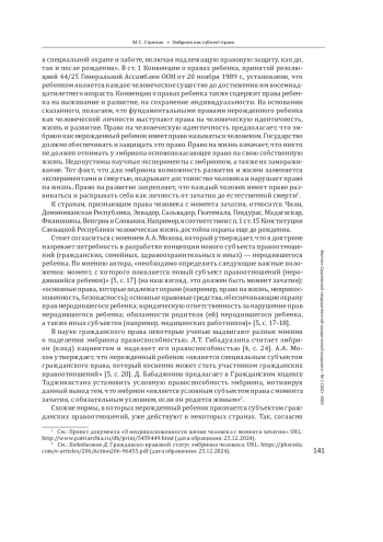 5. Мохов А. А. Неродившийся ребенок - субъект правоотношений? // Семейное и жилищное право. 2019. № 4. С. 14-18. EDN: ZHHQSE