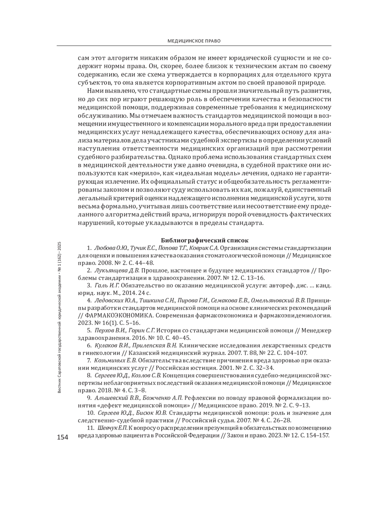 10. Сергеев Ю.Д., Бисюк Ю. В. Стандарты медицинской помощи: роль и значение для следственно-судебной практики // Российский судья. 2007. № 4. С. 26-28. EDN: KHQRFT