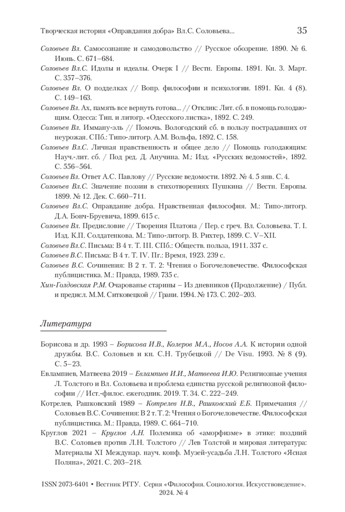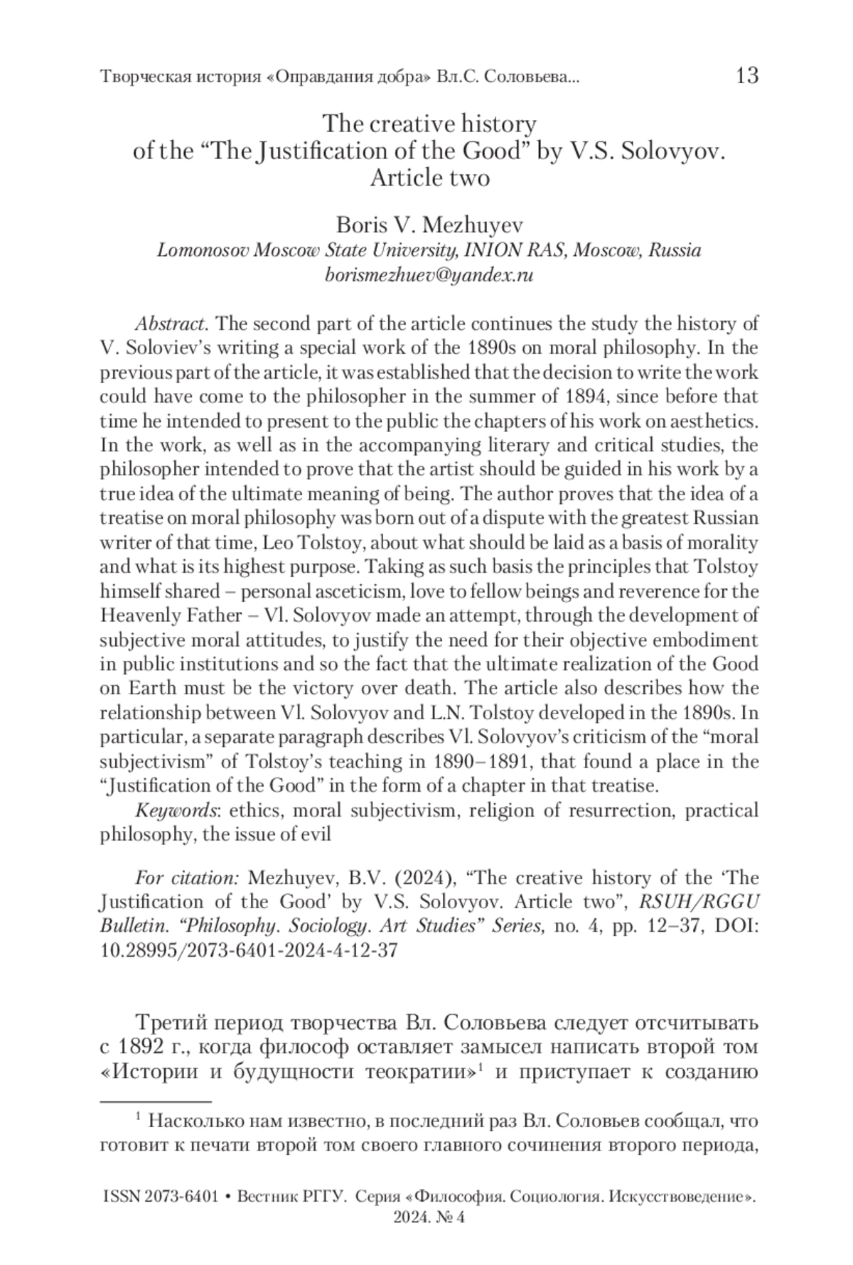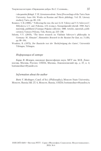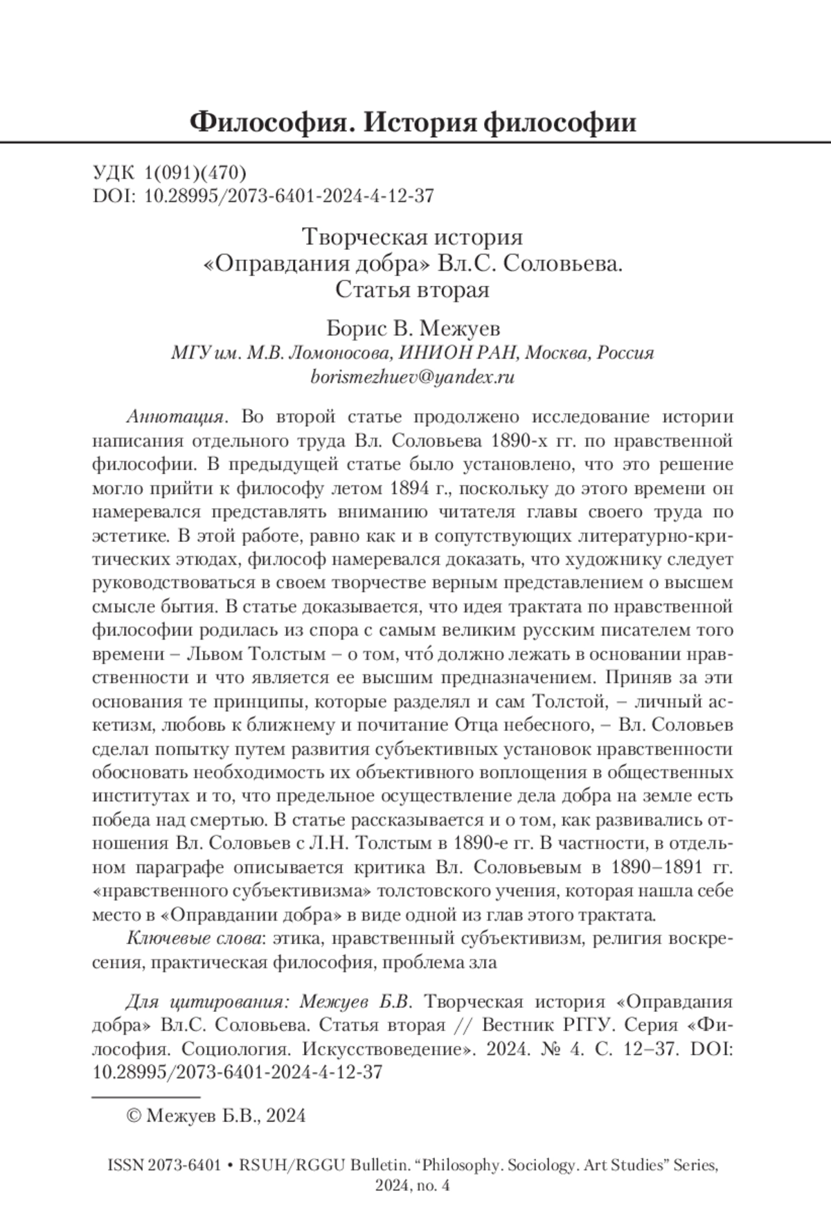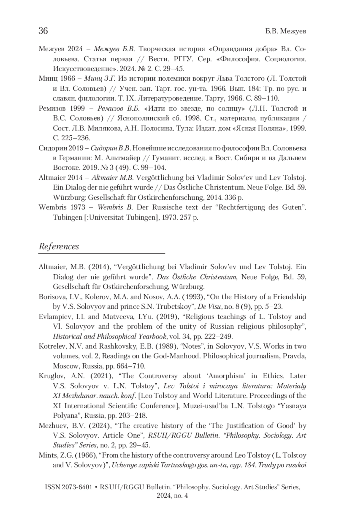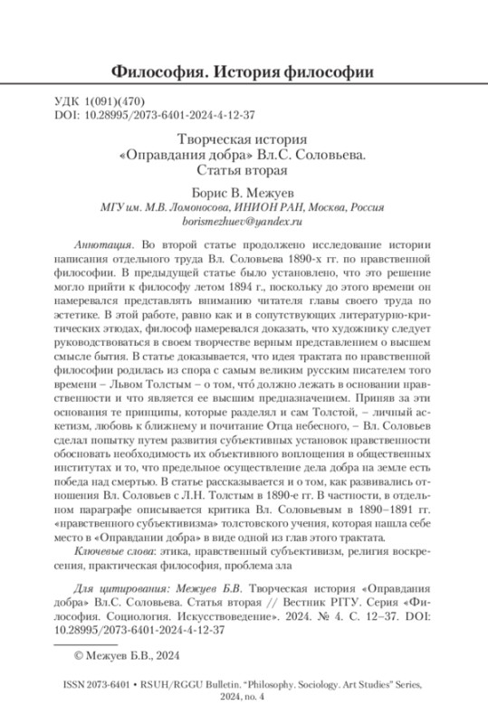 5. Межуев 2024 - Межуев Б.В. Творческая история «Оправдания добра» Вл. Соловьева. Статья первая // Вестн. РГГУ. Сер. «Философия. Социология. Искусствоведение». 2024. № 2. С. 29-45.