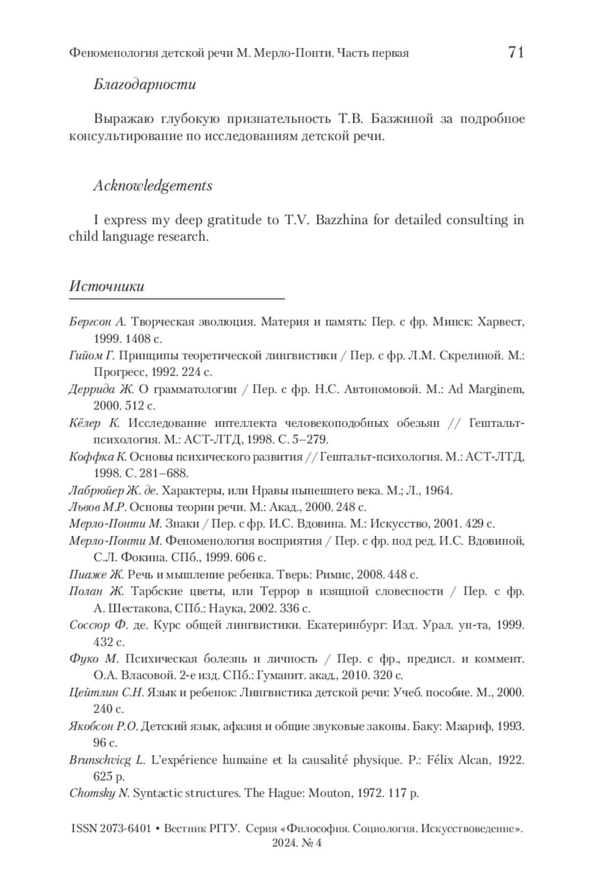 4. Bahler 2015 - Bahler Br. Merleau-Ponty on Children and Childhood // Childhood and Philosophy. 2015. № 11 (22). P. 203-221.