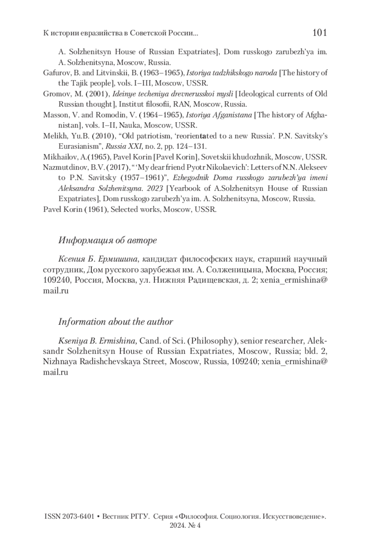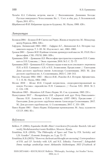 4. Ермишина 2018 - Ермишина К.Б. Философия пространства и времени П.Н. Савицкого и Л.Н. Гумилева // Экон. стратегии. 2018. № 5. С. 72-77.