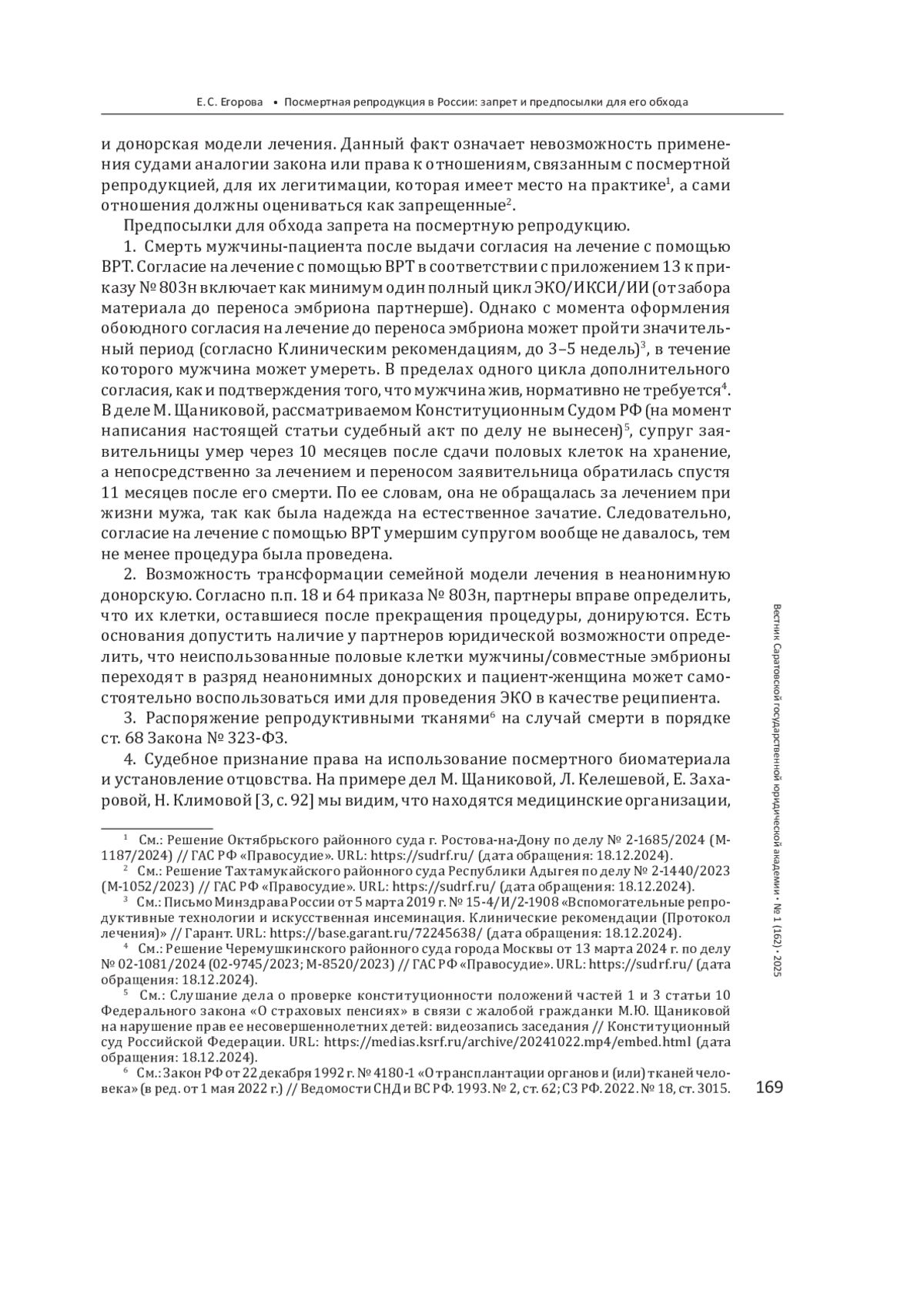 Рассмотрение Конституционным Судом РФ дела по заявлению. М. Щаниковой, вскрывшего проблемы регулирования посмертной репродукции, показывает, что исследование этих вопросов имеет практическое значение и актуальность.