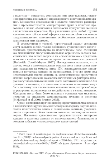 9. Bratton 2005 - Bratton KA. Critical Mass Theory Revisited: The Behavior and Success of Token Women in State Legislatures // Politics & Gender. 2005. № 1 (1). P. 97-125.
