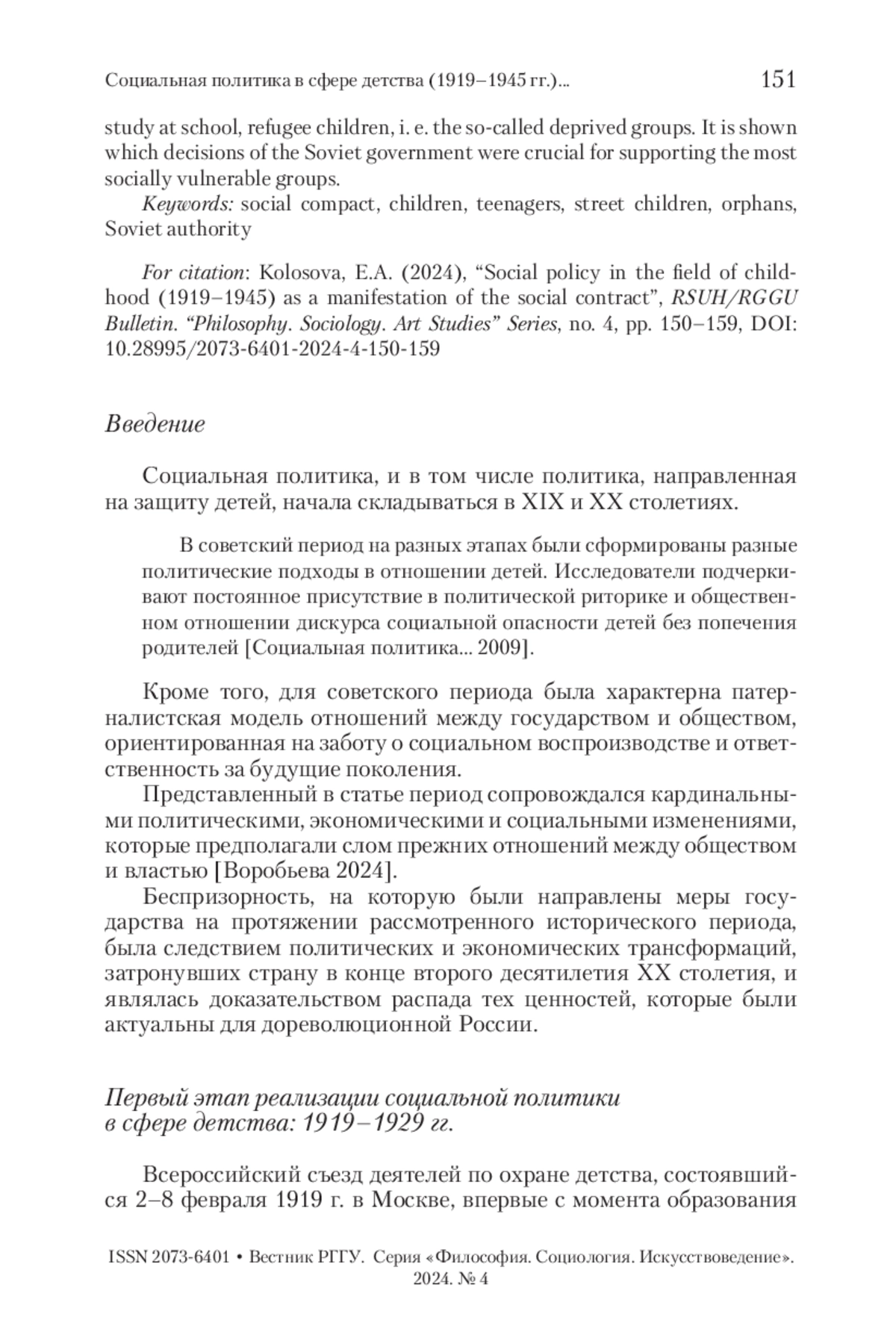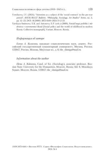 1. Воробьева 2024 - Воробьева И.В. Ученые как субъект «общественного договора» в предвоенный период // Вестн. РГГУ. Сер. «Философия. Социология. Искусствоведение». 2024. № 3. С. 12-23. https://doi.org/10.28995/2073-6401-2024-3-12-23.
