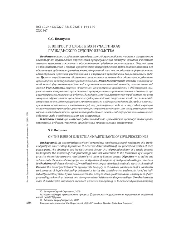 4. 	Ахмеров Р. А. Система субъектов гражданского судопроизводства: автореф. дис.... канд. юрид. наук. Саратов, 2022. 23 с. EDN: AUQGJP