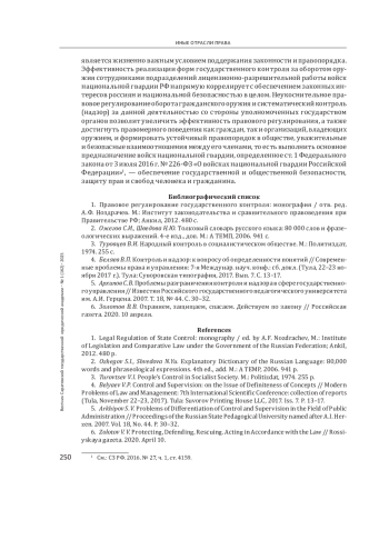 5. 	Архипов С. В. Проблемы разграничения контроля и надзора в сфере государственного управления // Известия Российского государственного педагогического университета им. А. И. Герцена. 2007. Т. 18, № 44. С. 30-32. EDN: JSYAOB