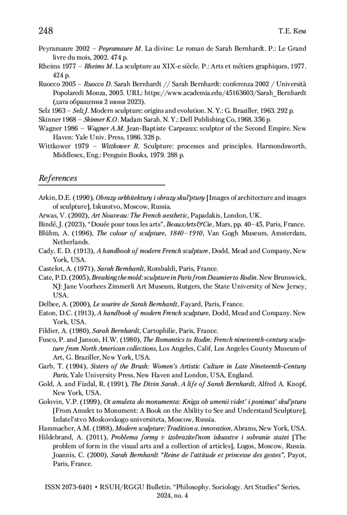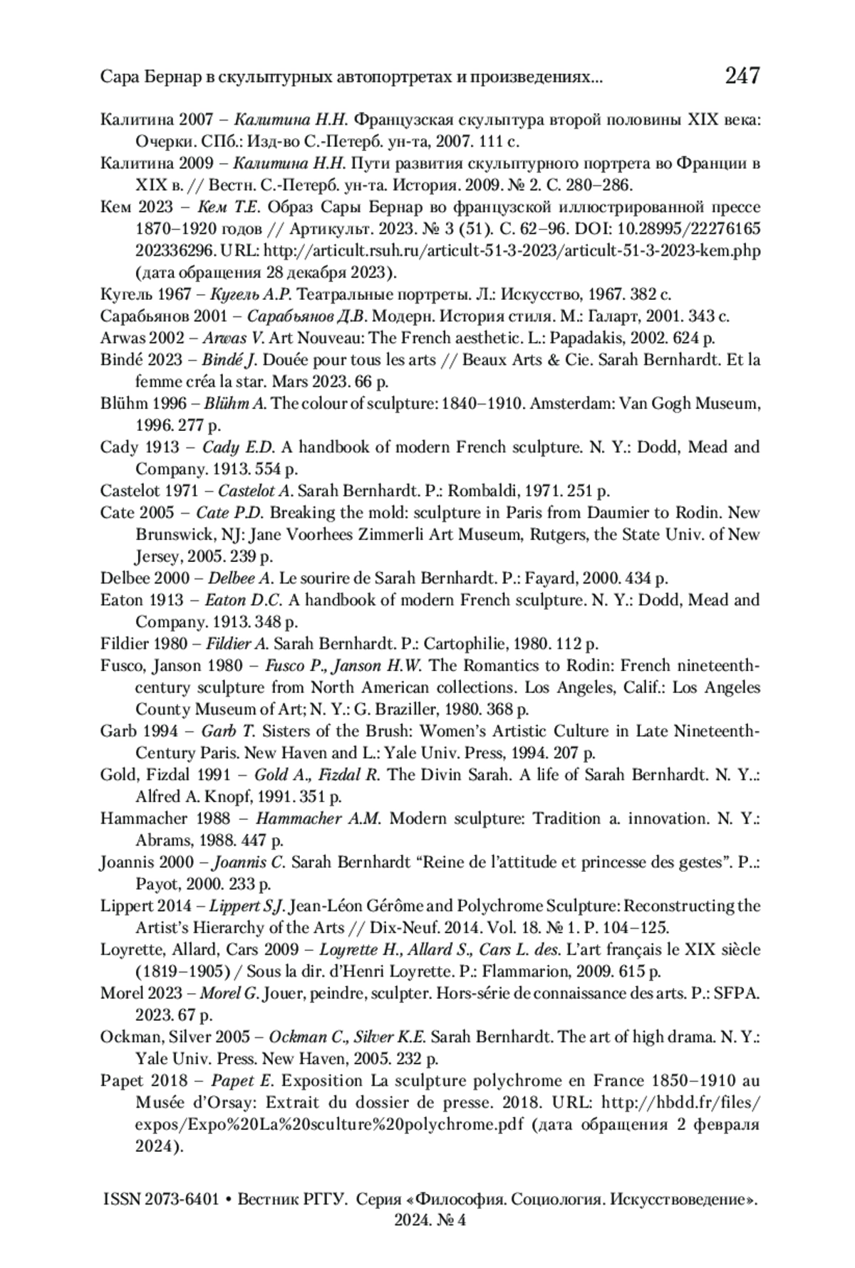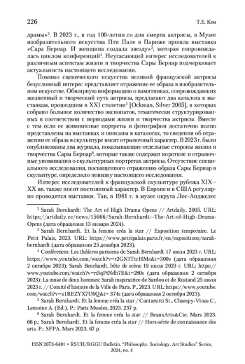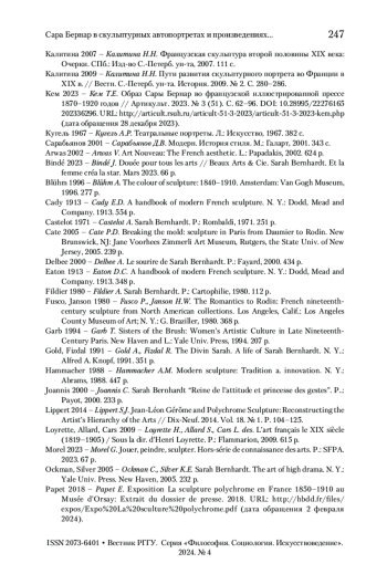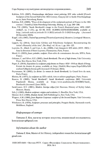 6. Кем 2023 - Кем Т.Е. Образ Сары Бернар во французской иллюстрированной прессе 1870-1920 годов // Артикульт. 2023. № 3 (51). С. 62-96. https://doi.org/10.28995/22276165 202336296. URL: http://articult.rsuh.ru/articult-51-3-2023/articult-51-3-2023-kem.php (дата обращения 28 декабря 2023).
