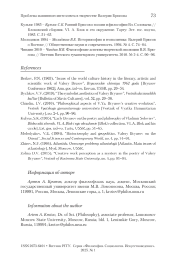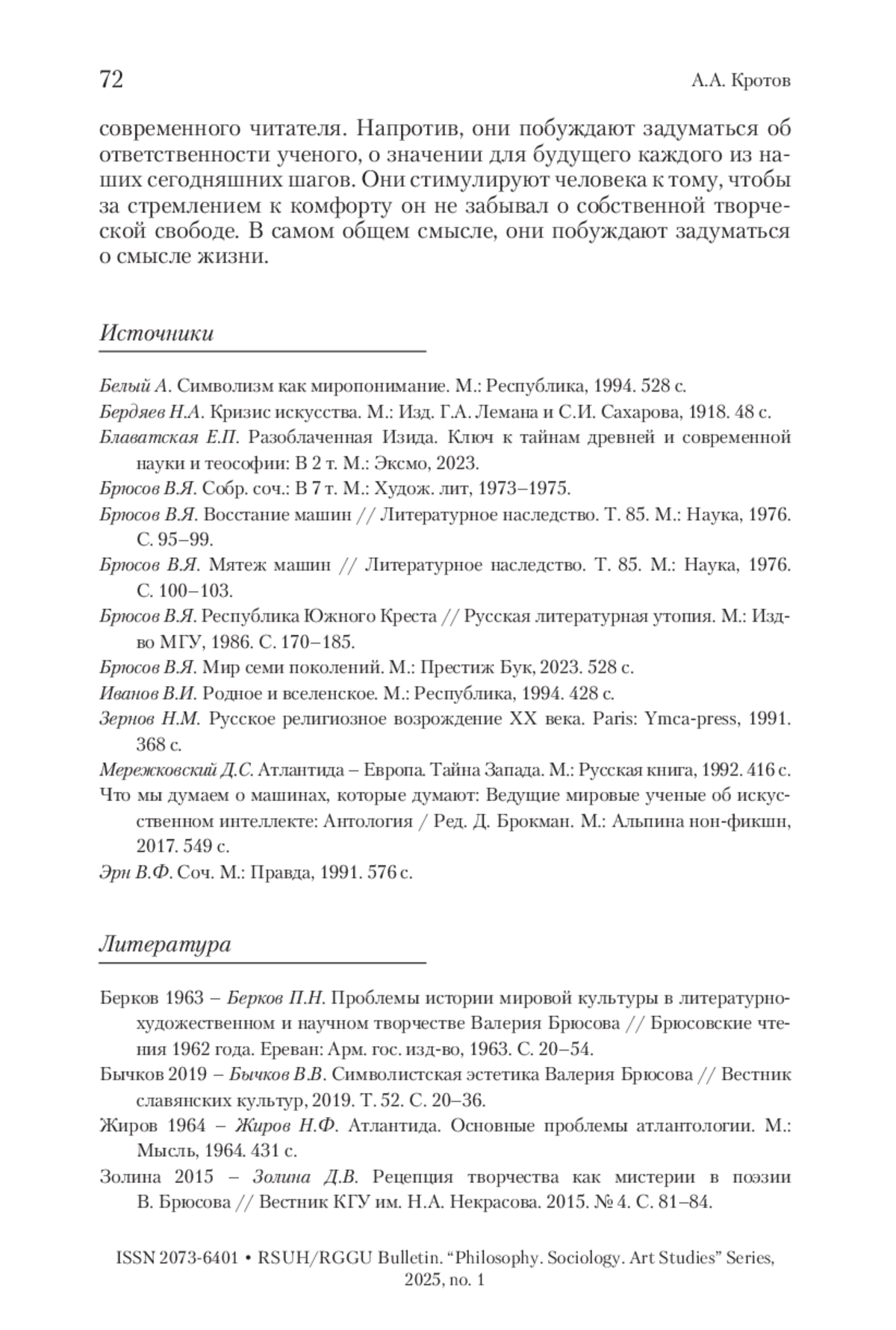 2. Бычков 2019 - Бычков В.В. Символистская эстетика Валерия Брюсова // Вестник славянских культур, 2019. Т. 52. С. 20-36.