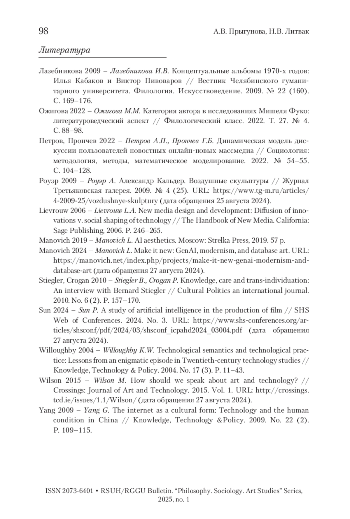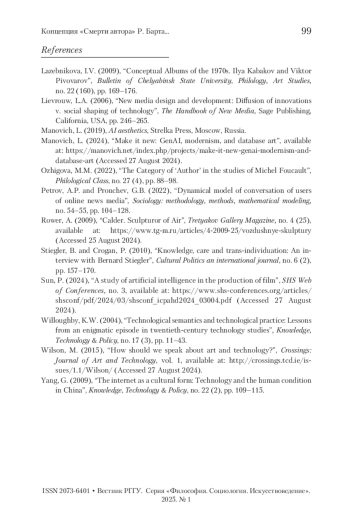 7. Manovich 2024 - Manovich L. Make it new: GenAI, modernism, and database art. URL: https://manovich.net/index.php/projects/make-it-new-genai-modernism-anddatabase-art (дата обращения 27 августа 2024).