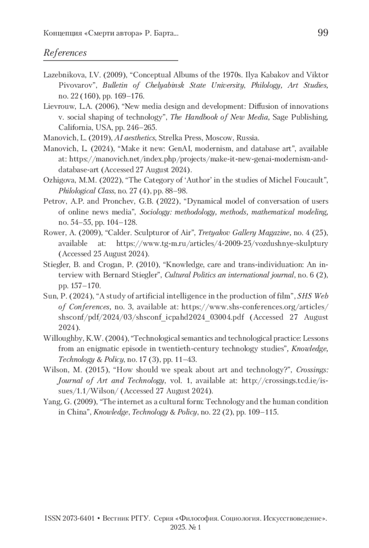 6. Manovich 2019 - Manovich L. AI aesthetics. Moscow: Strelka Press, 2019. 57 p.