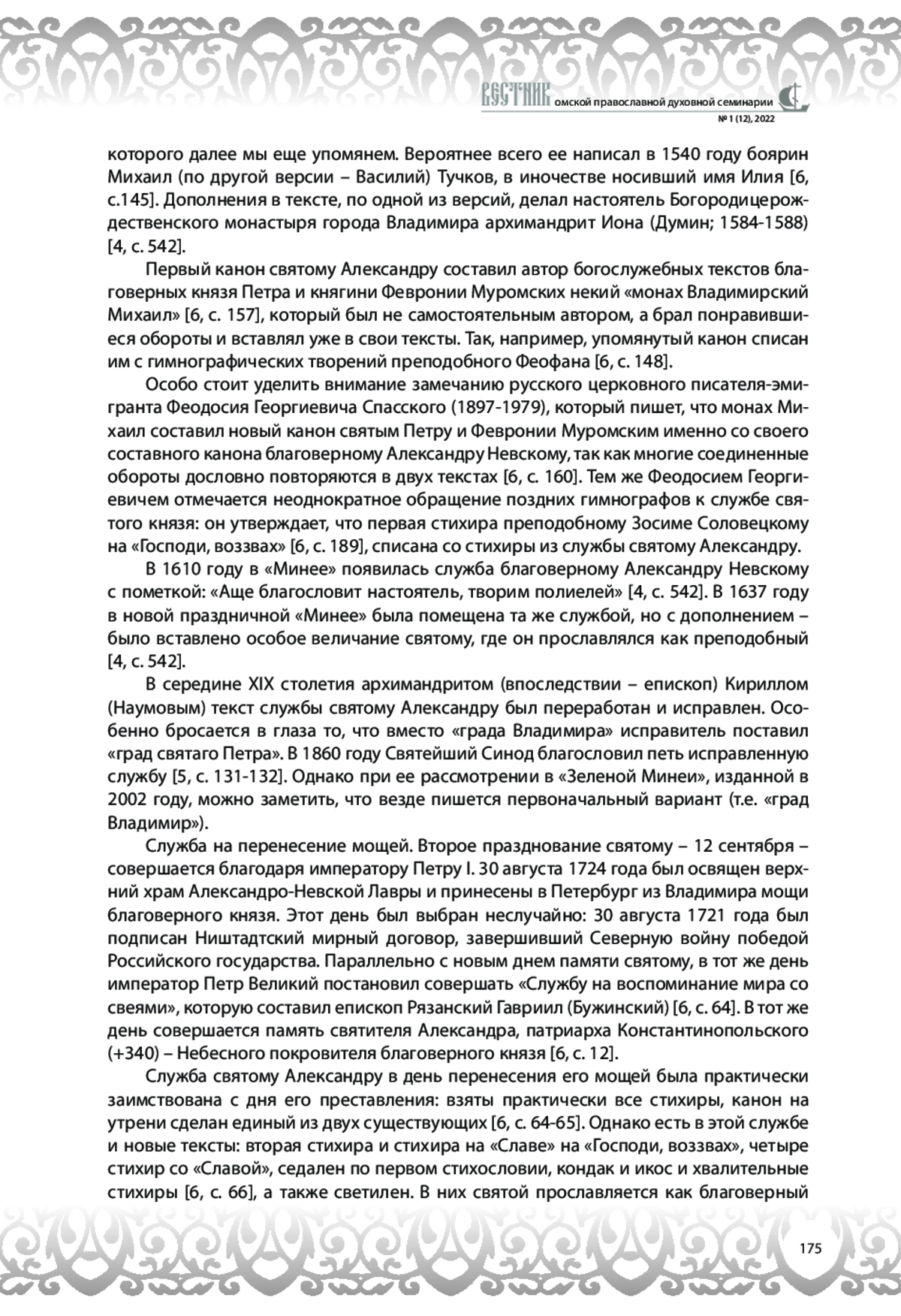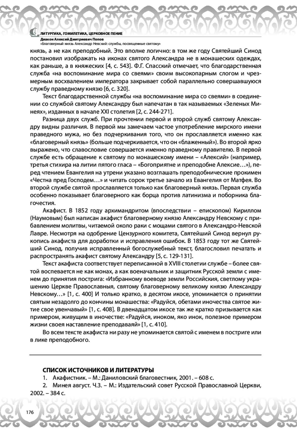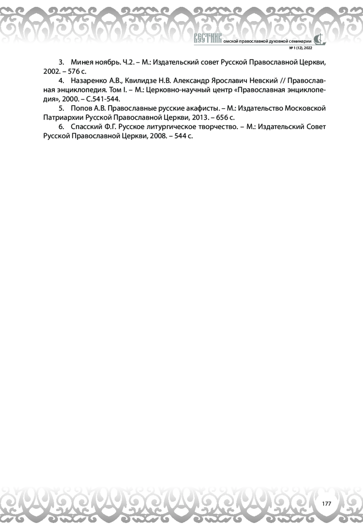 Попов А.Д., диак. Благоверный князь Александр Невский: службы, посвященные святому // Вестник Омской православной духовной семинарии. - 2022. - №1 (12). - С.174-177.