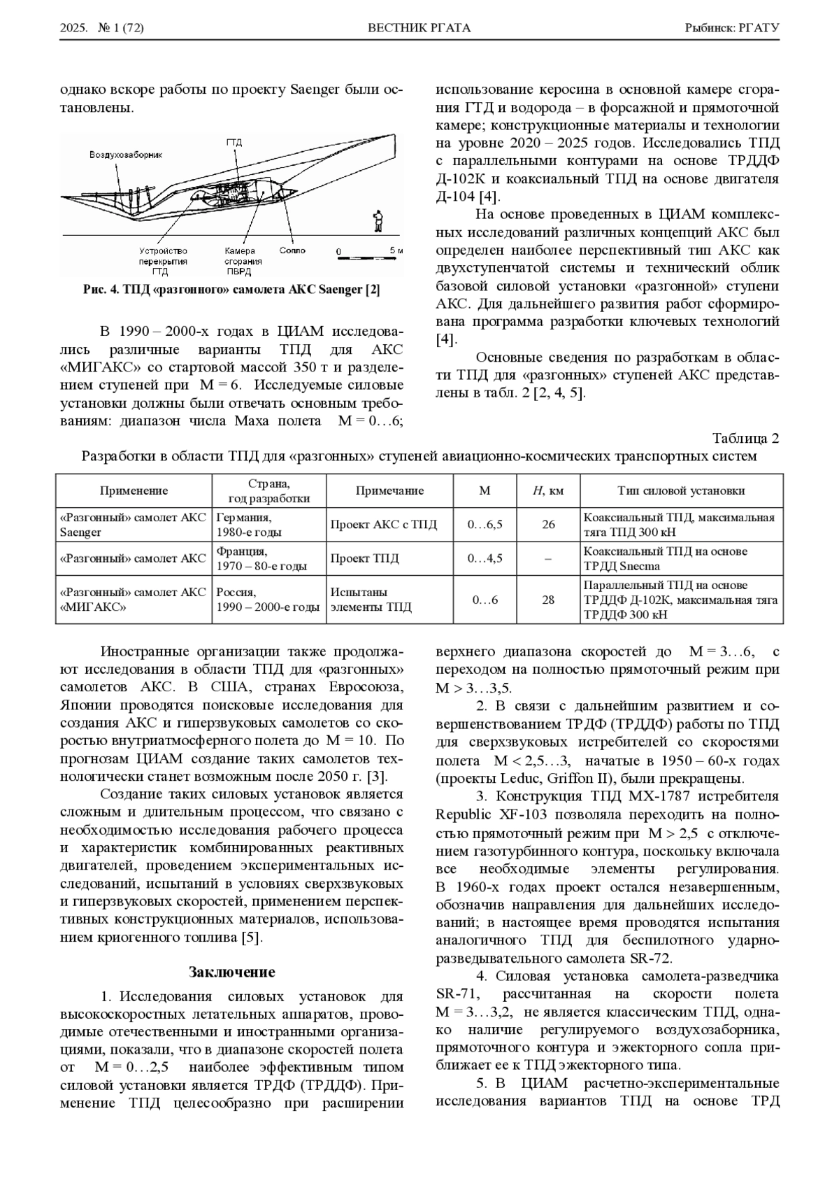 4. 	Ланшин А. И. Исследования двигателей силовой установки самолета-разгонщика перспективной многоразовой двухступенчатой авиационно-космической системы // Авиационные двигатели. - 2022. - № 3 (16). - С. 29 - 42.  EDN: XWLIPK