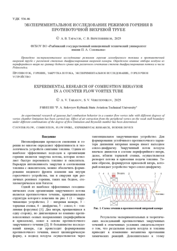1. 	Evdokimov O. A., Guryanov A. I., Veretennikov S. V., Prokhorov D. Transient numerical simulations of a cold-flow bidirectional vortex chamber // Physics of Fluids. - 2022. - Vol. 34. - No. 1. - P. 015123.  EDN: SXMKZL
