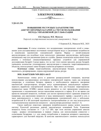 В статье отмечено, что модернизация электрических сетей и повышение доли альтернативных источников электроэнергии ведут к увеличению потребности в химических накопителях электрической энергии. Наряду с литий-ионными аккумуляторами для подобных нужд используют свинцовые аккумуляторы, требующие специальных мер для увеличения срока их службы. Данная техническая задача может быть решена с помощью специализированных зарядных устройств для управляемой десульфатации батарей. Сделан вывод, что за счет этого можно продлить ресурс батарей, уменьшить количество утилизируемых аккумуляторов и повысить энергозащищенность объектов, использующих такие батареи в качестве резервного источника