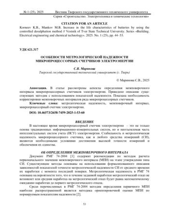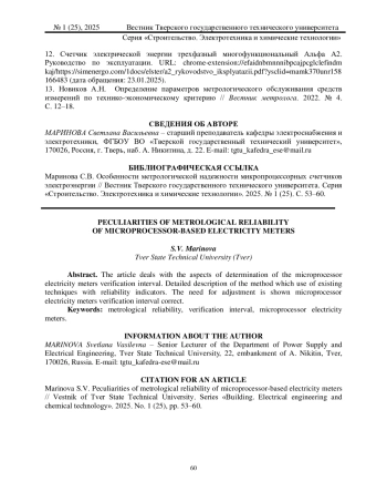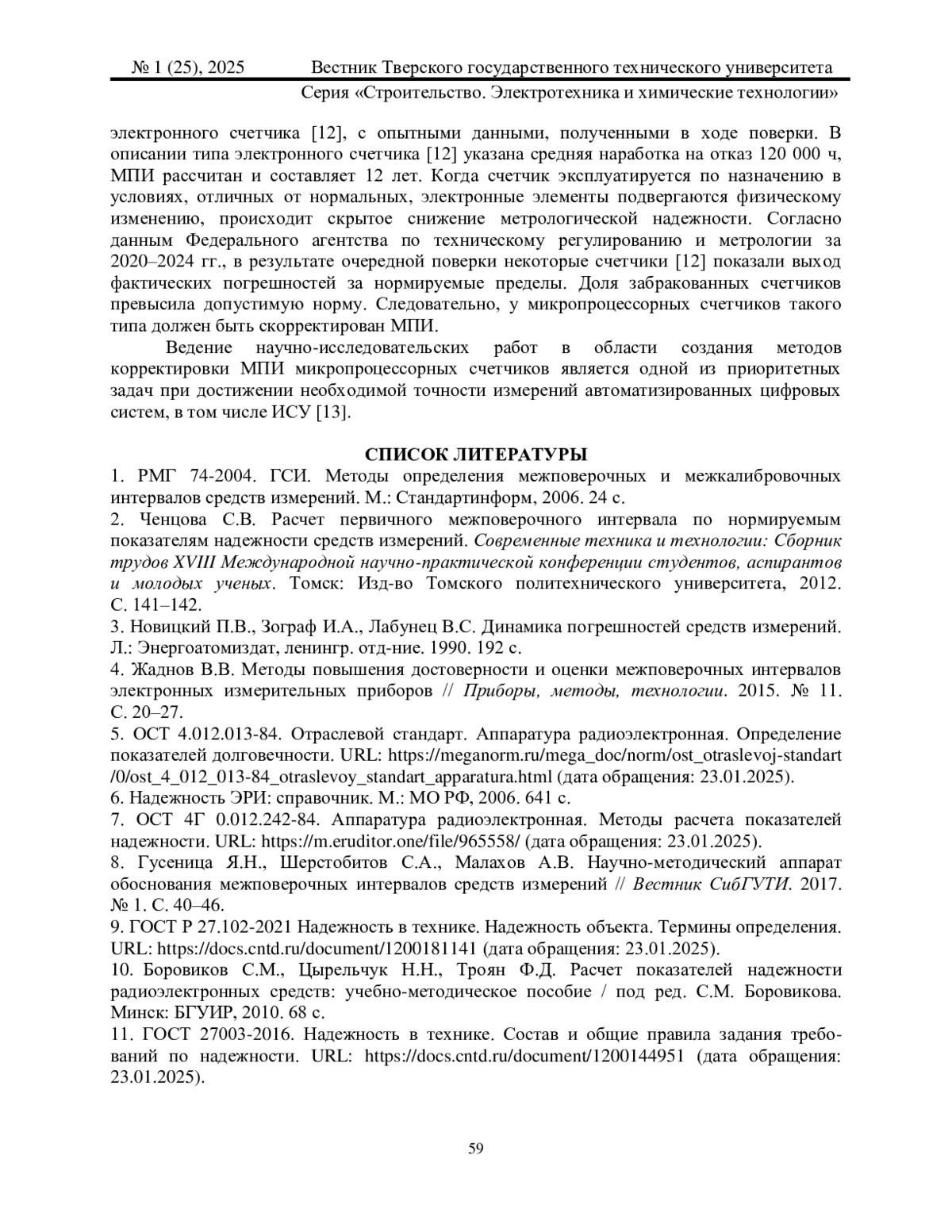 8. 	Гусеница Я.Н., Шерстобитов С.А., Малахов А.В. Научно-методический аппарат обоснования межповерочных интервалов средств измерений // Вестник СибГУТИ. 2017. № 1. С. 40-46.  EDN: YLGFDP