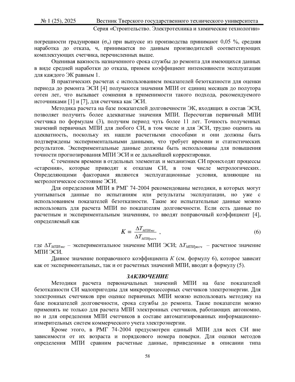 13. 	Новиков А.Н. Определение параметров метрологического обслуживания средств измерений по технико-экономическому критерию // Вестник метролога. 2022. № 4. С. 12-18.  EDN: HSKQZZ