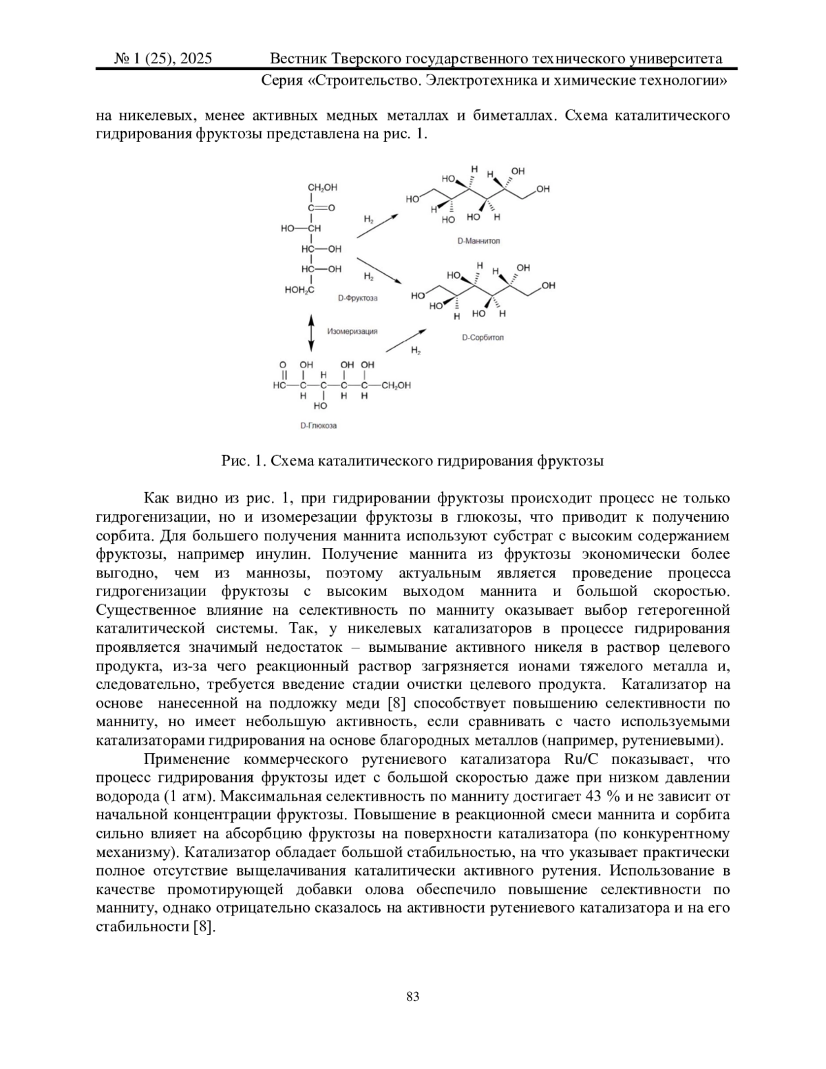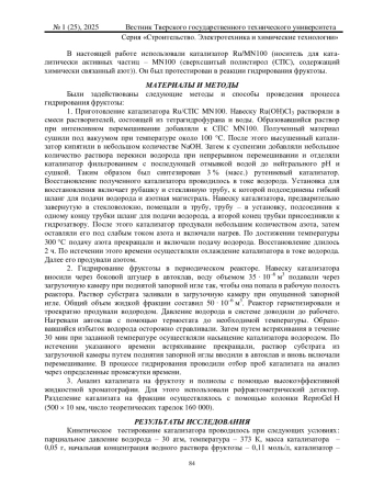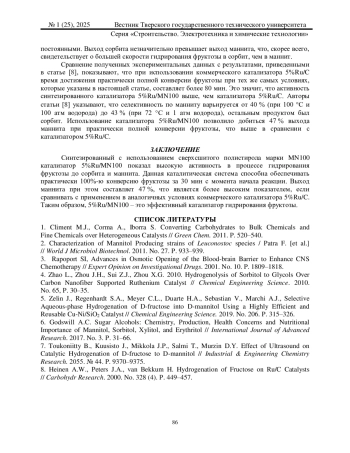 8. 	Heinen A.W., Peters J.A., van Bekkum H. Hydrogenation of Fructose on Ru/C Catalysts // Carbohydr Research. 2000. No. 328 (4). P. 449-457.
