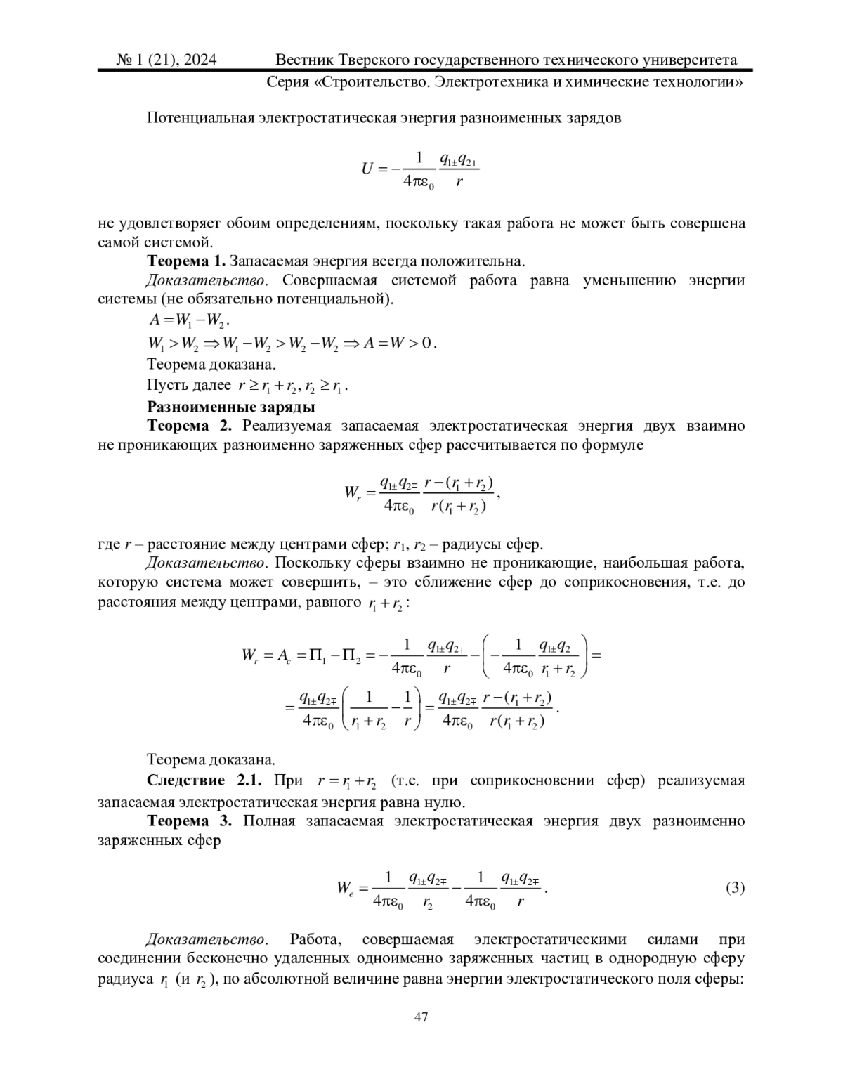 3. Попов И.П. Энергия электростатического поля заряженных непроводящих шаров // Вестник Таганрогского института им. А.П. Чехова. Физико-математические и естественные науки. 2021. № 2. С. 27-35. EDN: SFXNCD