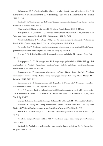 9. Купина Н. А. Тоталитарный язык: Словарь и речевые реакции. Екатеринбург-Пермь: Изд-во Урал ун-та ЗУУНЦ. 1995. 144 с.