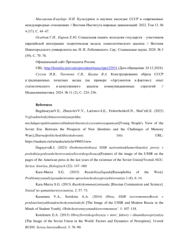 10. 	Маслакова-Клауберг Н.И. Культурное и научное наследие СССРвсовременных международных отношениях // Вестник Института мировых цивилизаций. 2022. Том 13. № 4 (37). С. 44-47.