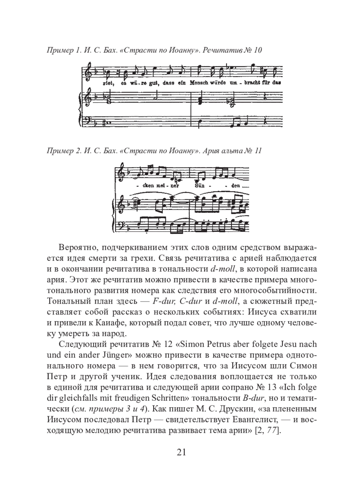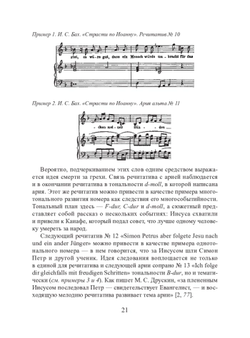 В исследованиях Пассионов И. С. Баха жанру речитатива всегда уделяется меньше внимания, чем другим номерам. На самом деле речитативы выполняют не только важную драматургическую роль, повествуя о событиях. Дж. Гардинер отмечает такие их черты, как «текучесть и драматическая сила партии Евангелиста» [1, 555]. Эту же мысль развивает и М. С. Друскин, объясняя ее тем, что «Бах вовсе не стремится к эпическому рассказу, он воспринимает Евангелиста как очевидца, который не может спокойно говорить о произошедшей драме, чему свидетелем был» [2, 54–55].