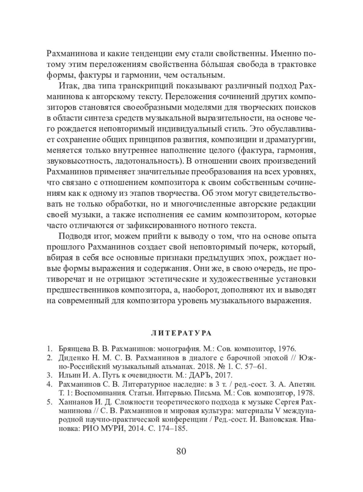 5. Ханнанов И. Д. Сложности теоретического подхода к музыке Сергея Рахманинова // С. В. Рахманинов и мировая культура: материалы V международной научно-практической конференции / Ред.-сост. И. Вановская. Ивановка: РИО МУРИ, 2014. С. 174–185.
