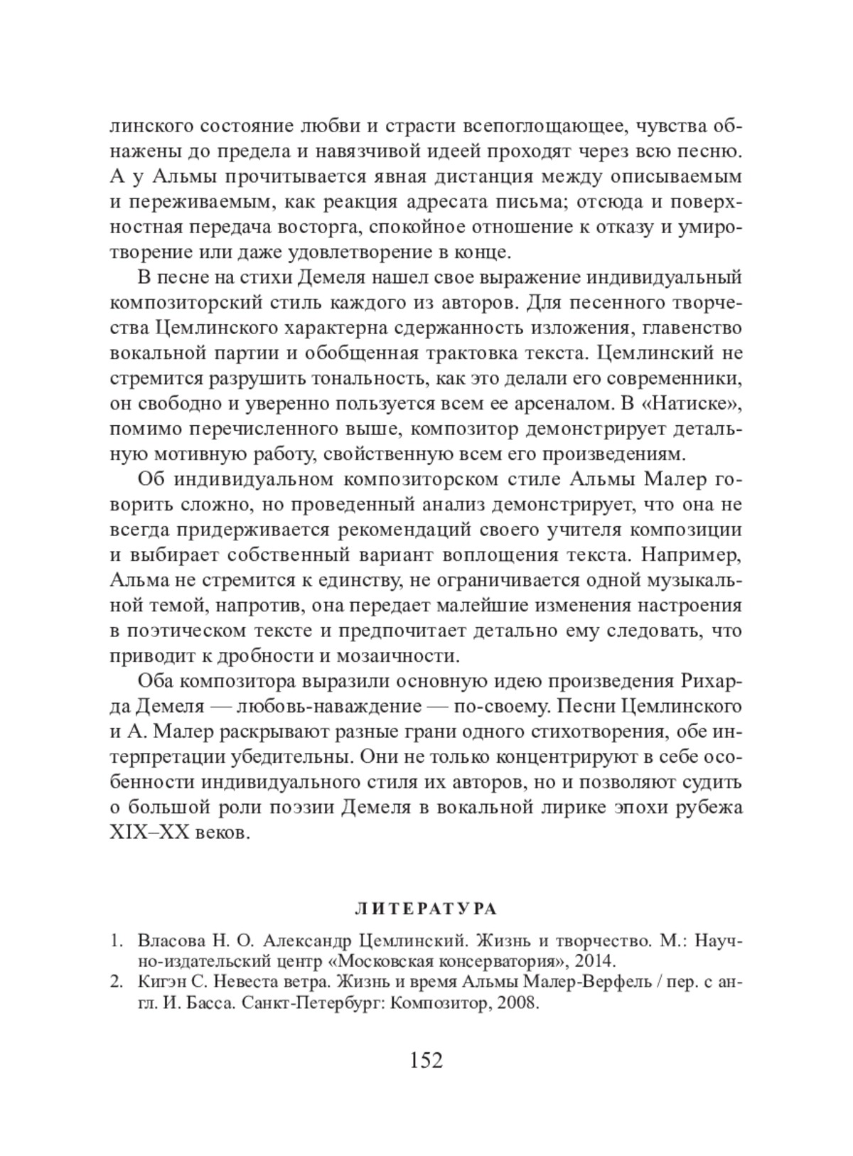 1. Власова Н. О. Александр Цемлинский. Жизнь и творчество. М.: Научно-издательский центр «Московская консерватория», 2014.