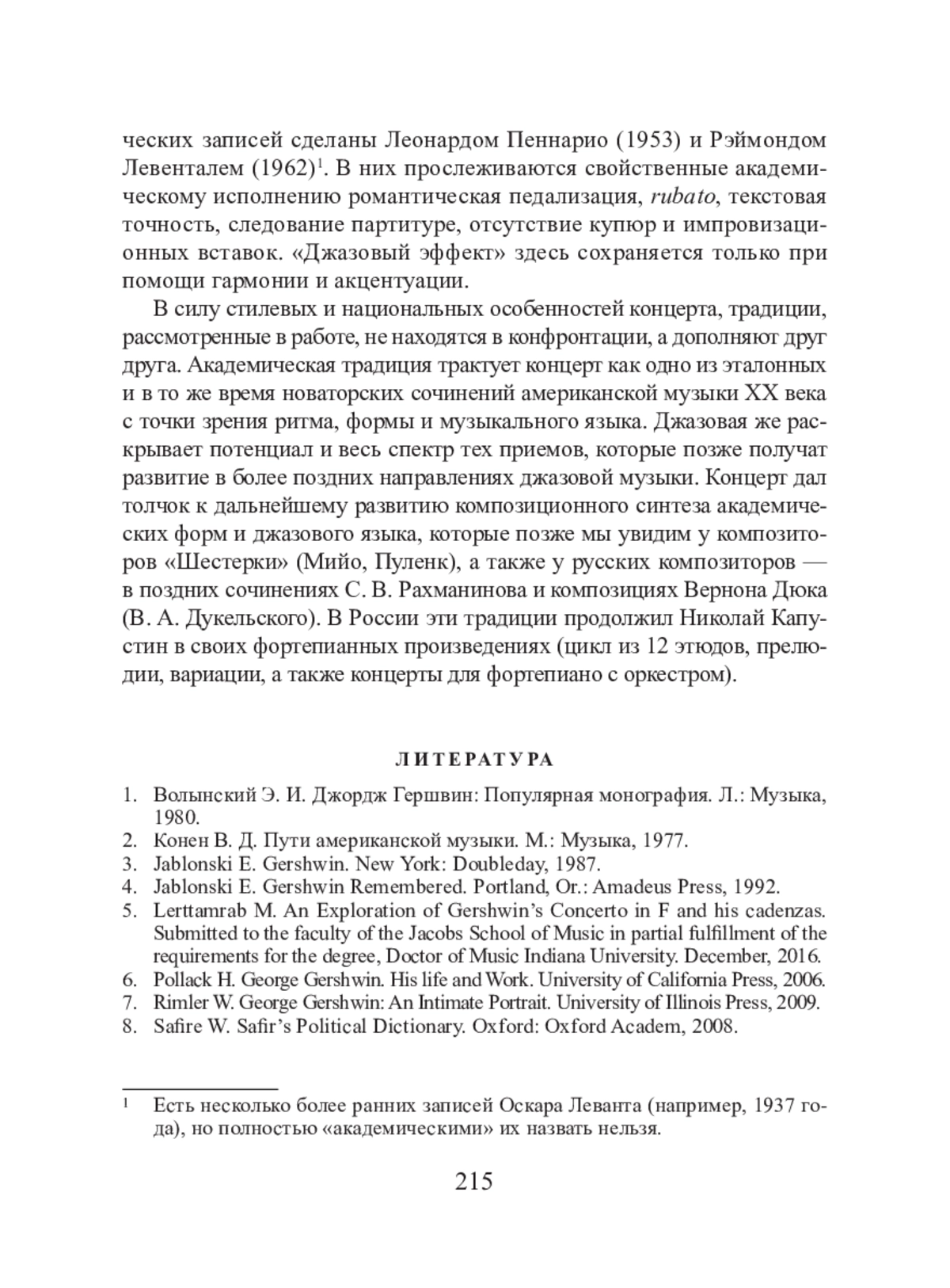 1. Волынский Э. И. Джордж Гершвин: Популярная монография. Л.: Музыка, 1980.