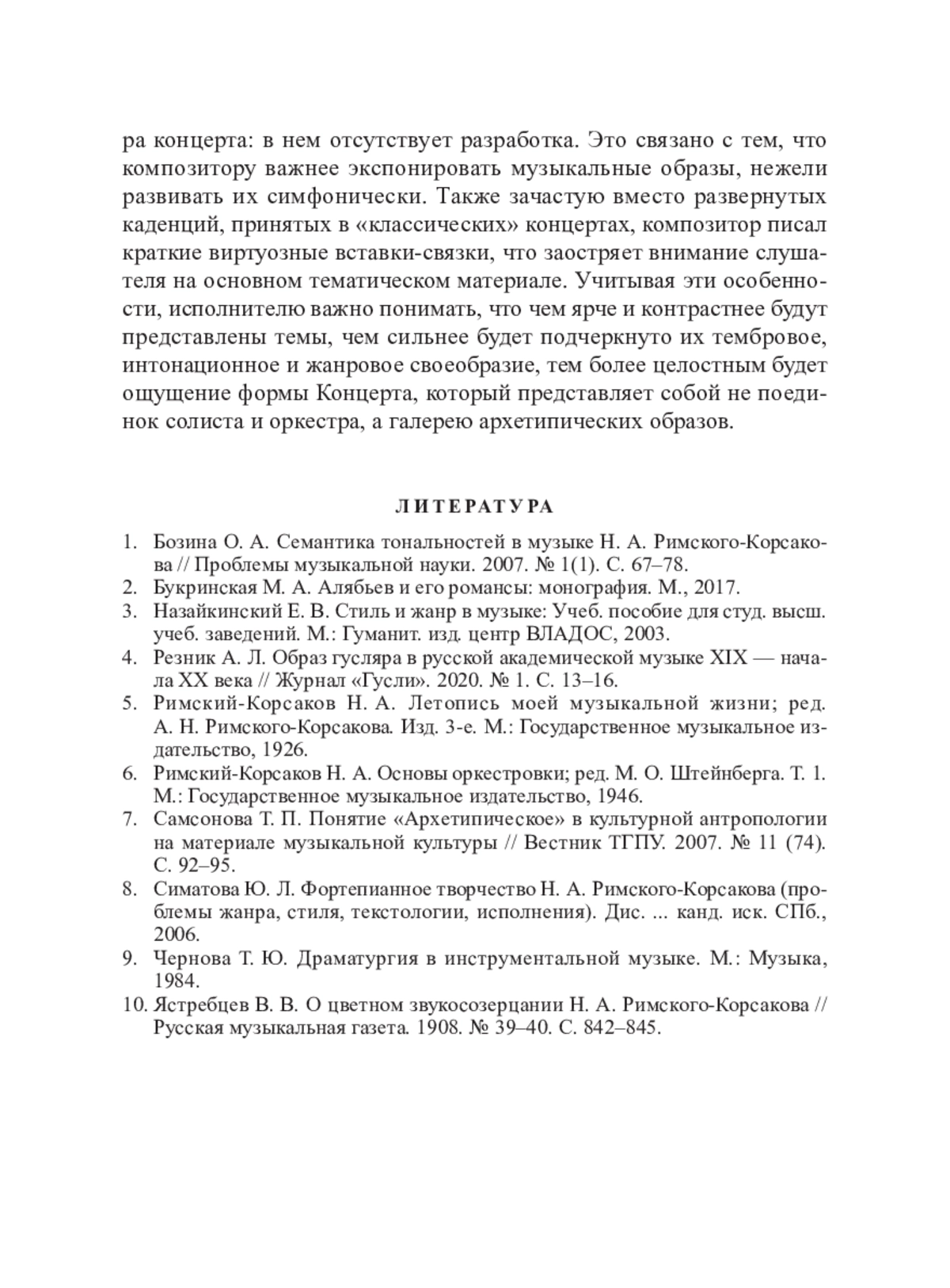 1. Бозина О. А. Семантика тональностей в музыке Н. А. Римского-Корсакова // Проблемы музыкальной науки. 2007. № 1(1). С. 67–78.